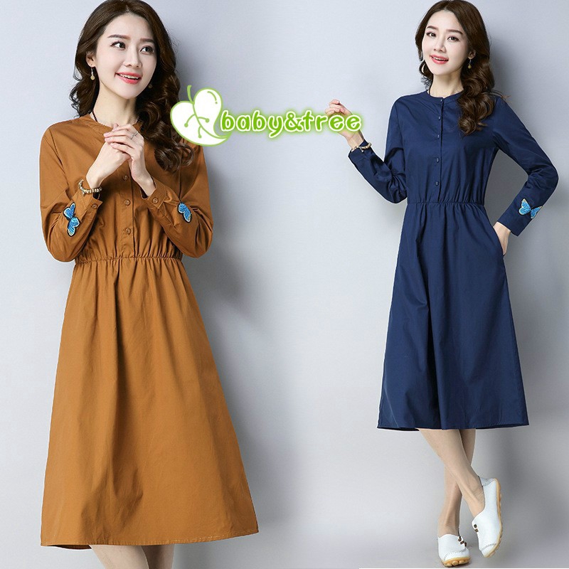 Maternity Dress Korean Fashion Long Sleeved Loose Pregnant Sumber : shopee.com.my